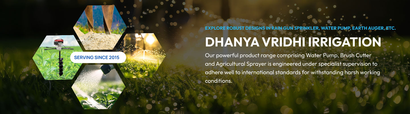 High-technology spray equipment, agricultural machinery and other products that also assure easy operability can be purchased at the best prices with Dhanya Vridhi Irrigation, an equipment manufacturing firm from Jaipur, Rajasthan, India. Our powerful product range comprising Water Pump, Brush Cutter and Agricultural Sprayer is engineered under specialist supervision to adhere well to international standards for withstanding harsh working conditions. We ensure our engineers and technocrats design products keeping pace with evolving technology so that what we offer products that best meet the latest market requirements. Our aim is to offer low-cost sale and service to Indian farmers and emerge as a reliable, ethcial and preferable name in the field.
